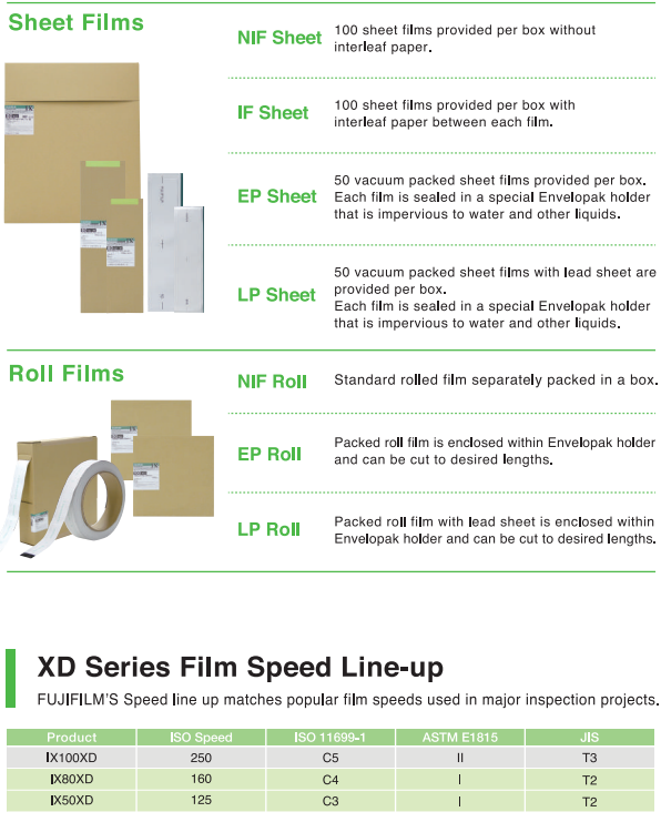 Fujifilm industrial X-ray films feature revolutionary new film technology. The combination of the latest in emulsion making science and computerized manufacturing processes assure consistent batchto-batch performance; optimum image quality and compatibility with all NDT chemistries and current brand tank / automatic processing conditions.