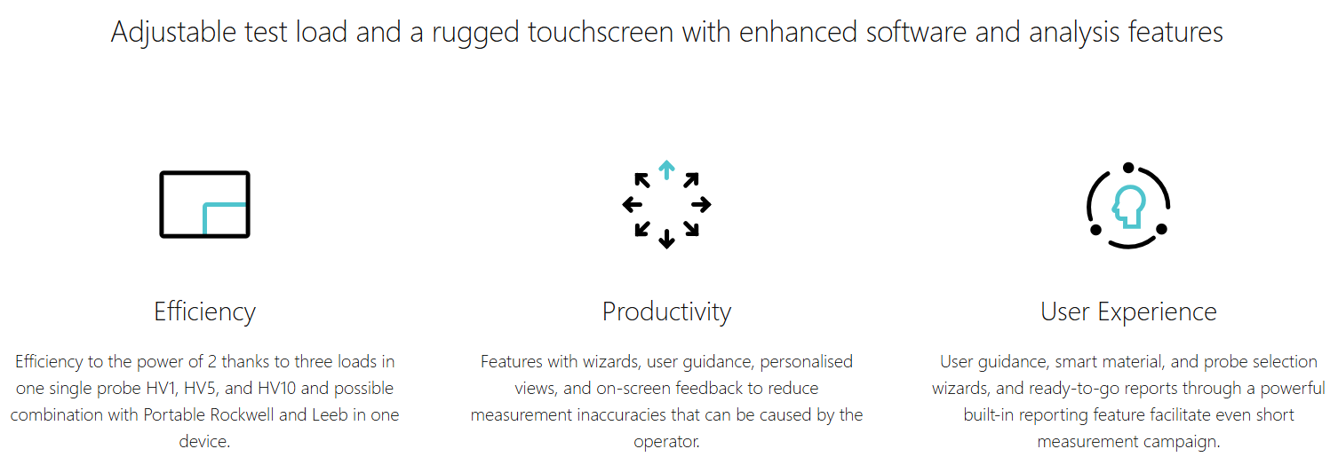 - Unmatched versatility owed to HV1, HV5, and HV10 test loads in a single probe